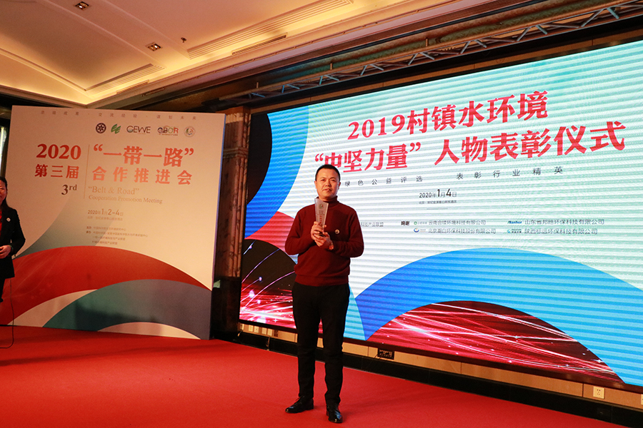 2020年1月4日上午,2019村镇水环境“中坚力量”人物表彰大会在北京世纪金源香山商旅酒店隆重举行,陕西尊龙凯时环保科技有限公司董事长朱龙海先生与60余位行业突出贡献人士一道获此殊荣。借此机会,《水工业市场》杂志对朱龙海先生进行了专访,请他就尊龙凯时的创业发展历程、公司治理心得做了详细介绍,并请他就分散污水治理市场的现状、前景等问题做了分析探讨。