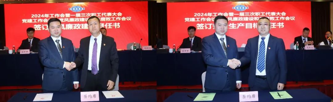 会议表决通过了行政工作报告和大会决议,签订了2024年度经营业绩责任书及2024年党风廉政建设责任书、2024年安全生产目标责任书,并对公司2023年度“先进集体”“先进个人”“优秀新人”进行表彰。